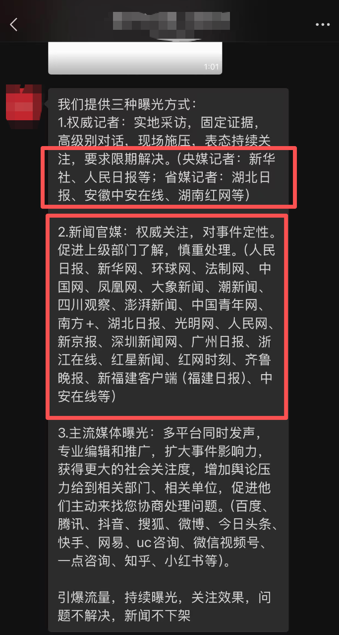 近年来,随着公众维权意识的增强,一些打着“专业维权”旗号的商业公司应运而生。它们有的声称是媒体团队,有的号称手握大量媒体资源,能通过“新闻曝光”的方式为企业或个人解决纠纷。