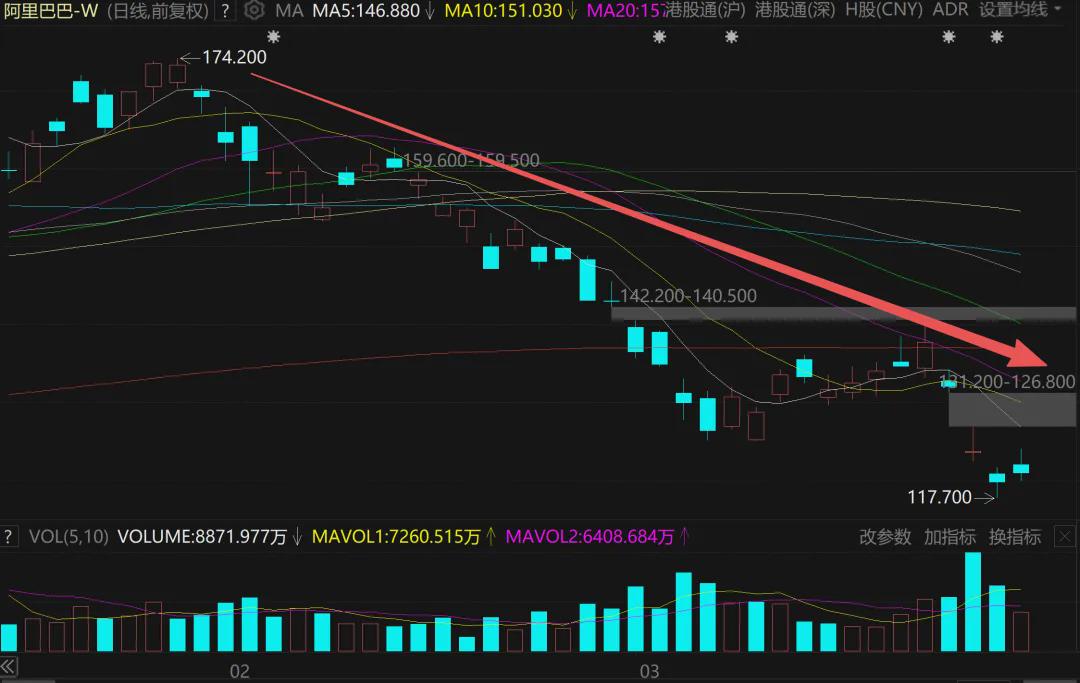 3月20日,港股的阿里巴巴紧接着大跌超过6%,3月23日又下跌超过3%。
