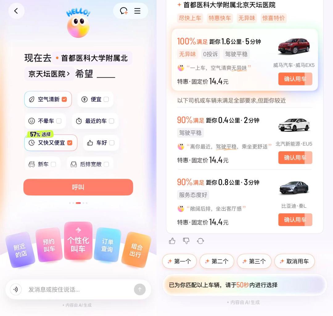 与此同时,预约叫车、组合出行、订单查询等新增AI功能也在被高频使用。
