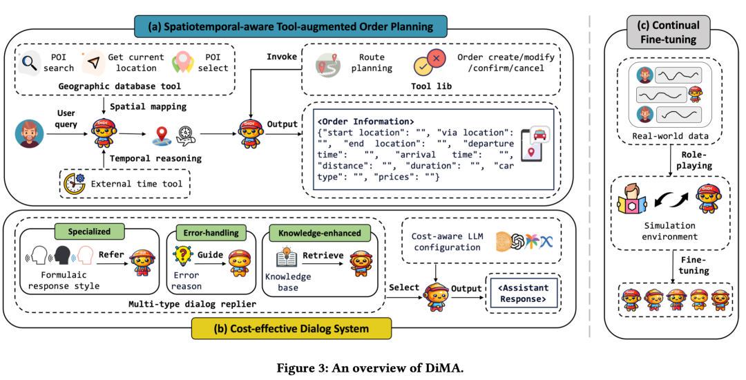 去年8月,滴滴曾在arXiv上发布过一篇关于AI打车Agent的论文(DiMA: An LLM-Powered Ride-Hailing Assistant at DiDi),在这篇论文中,滴滴详细阐释了如何通过技术来帮助大语言模型理解物理世界的时空概念。