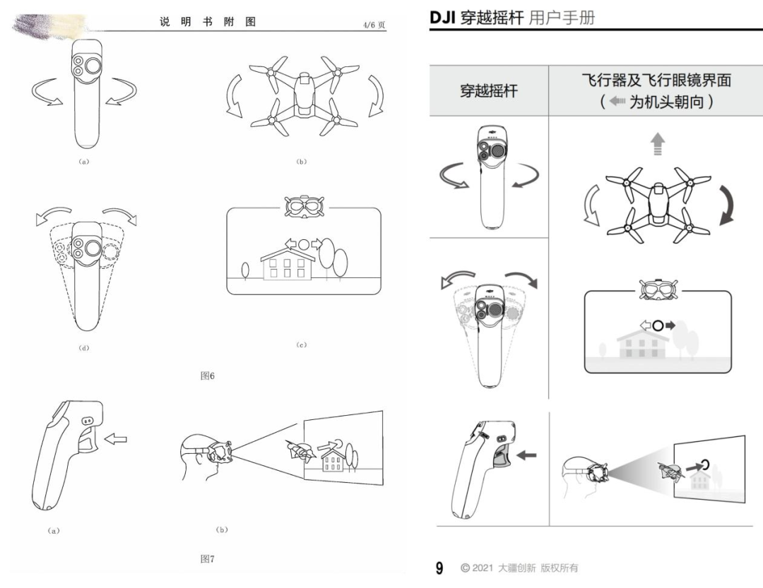后来还有网友称,影石2022年申请的某项专利说明书附图,与大疆2021年发布的首代穿越摇杆用户手册的附图极为相似。
