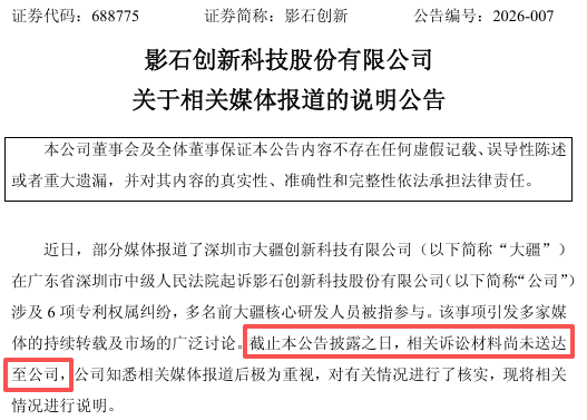结果说:相关诉讼材料尚未送达至公司。