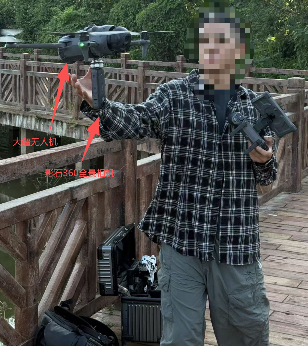所以我们最终只能用大疆无人机+影石的全景相机完成拍摄。