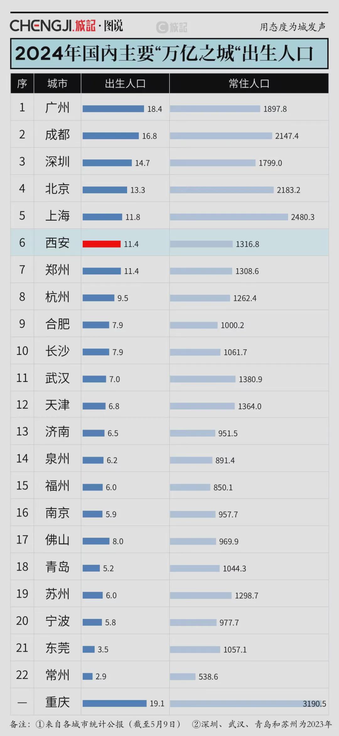 2024年,武汉出生人口仅7万左右,而常住人口不及武汉的西安、郑州、合肥、长沙,出生人口均高于武汉。