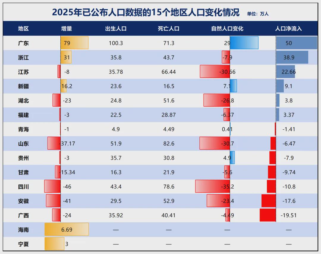 各省2025年人口数据陆续公布。
