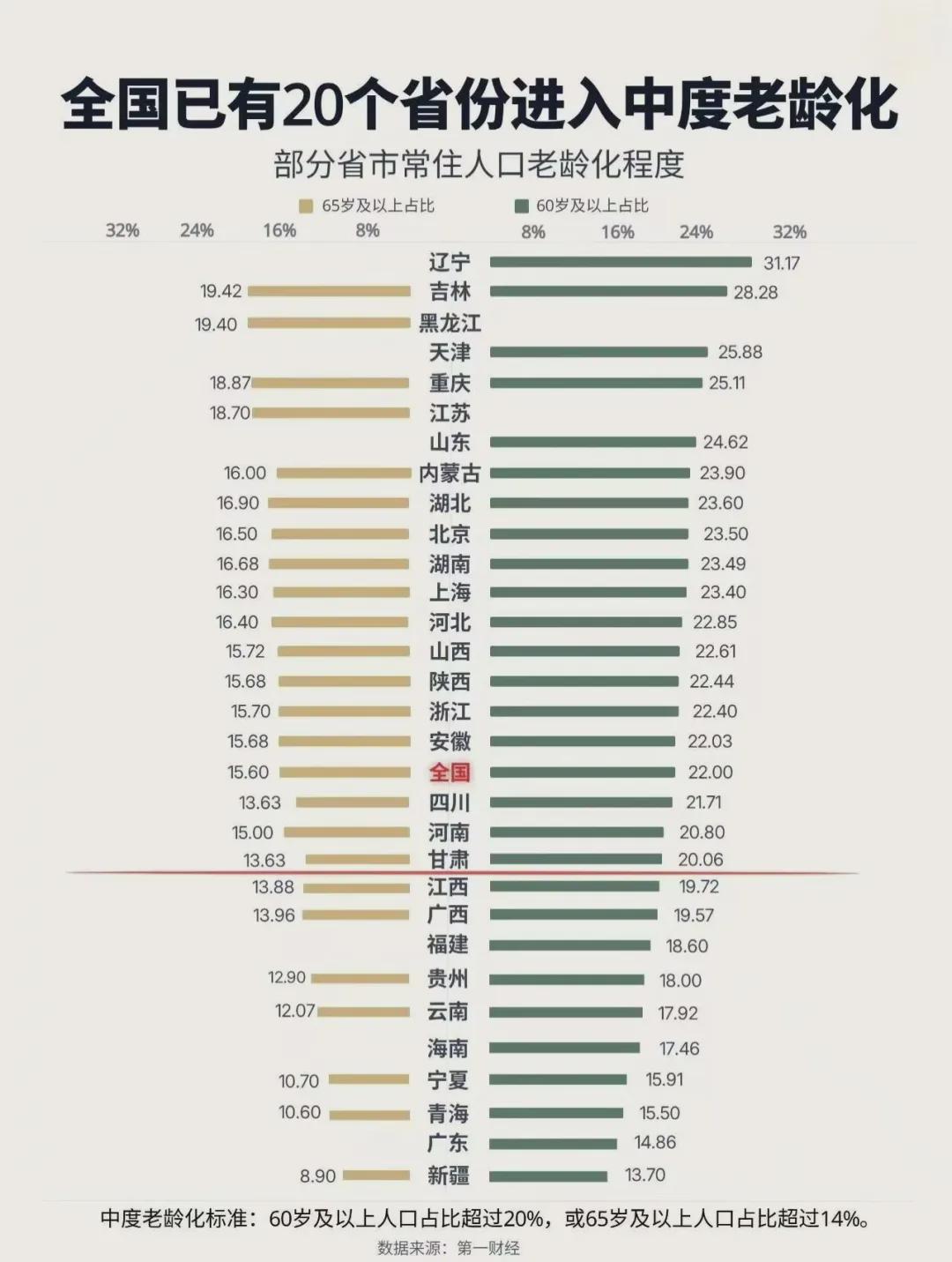 排在前面的,黑龙江、吉林、辽宁为东北地区,人口外流与老龄化叠加,原因已无需赘言。