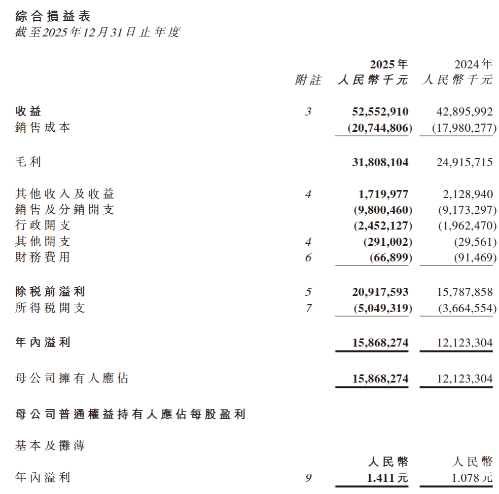 比如大头销售及分销开支,2025年为98.00亿元,同比增长6.8%低于营收增速,主要因2024奥运年后广告促销开支减少、物流费率优化等。行政开支24.52亿元,同比增长25.0%,略超过营收增速,但不多。