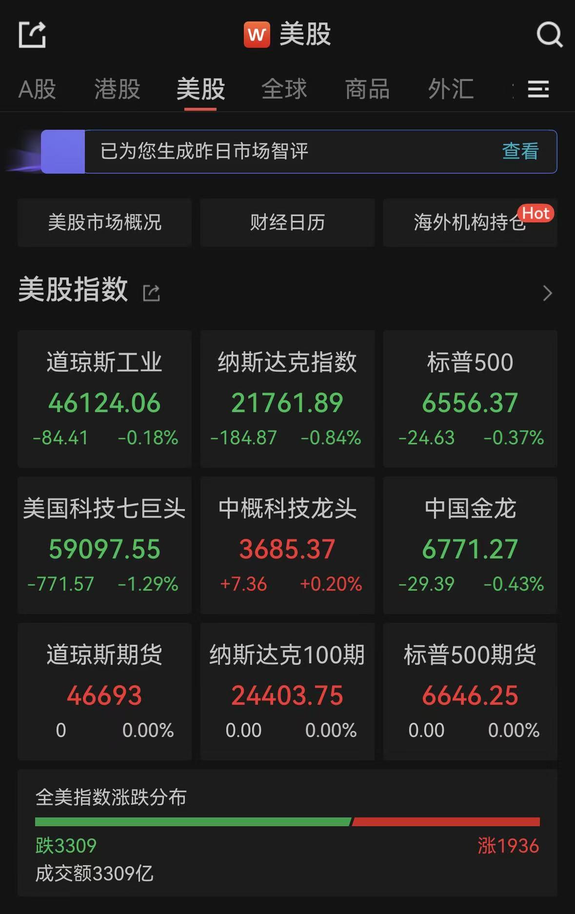 中新经纬3月25日电 美股走势较为疲软。道指、标普500指数盘中数度翻红,但收盘集体走弱。道指收跌0.18%,纳指跌0.84%,标普500指数跌0.37%。