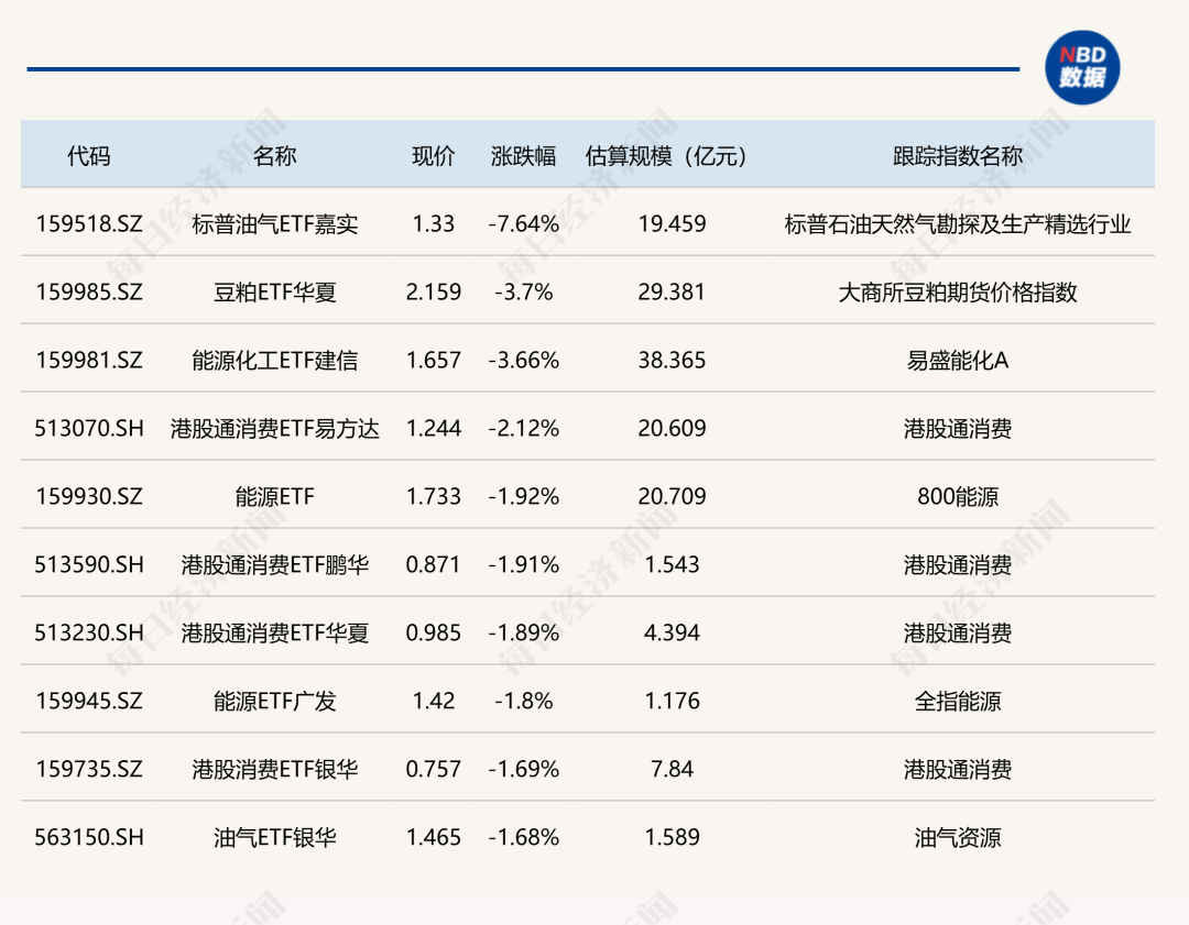 下跌方面,标普油气ETF嘉实跌超7%。