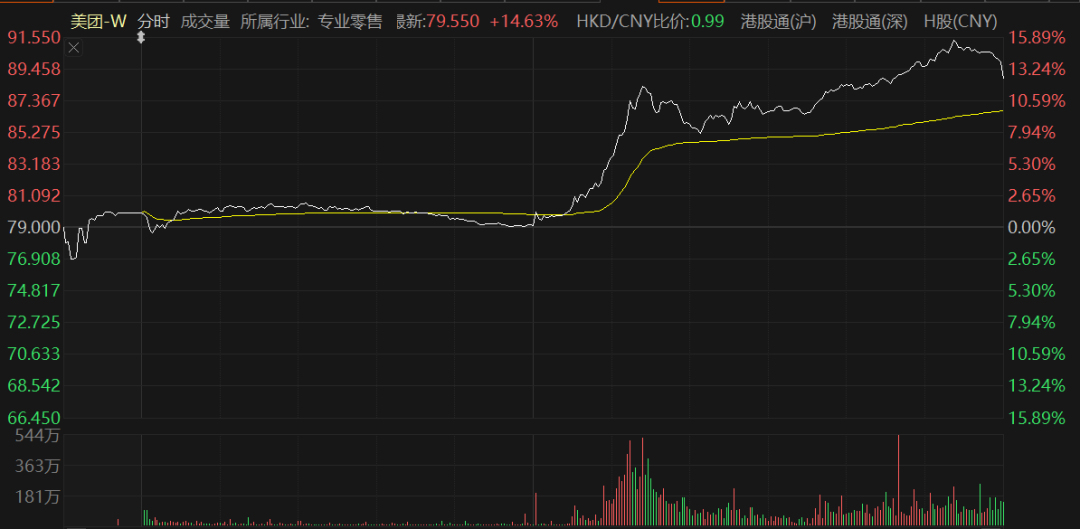 美团-W一度涨近16%,阿里巴巴-W一度涨超6%,京东集团-SW一度涨超5%。恒生互联网ETF(513330.SH)跟随上涨超3%。