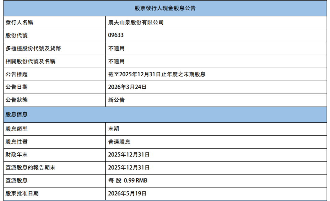 在发布业绩的同时,农夫山泉也发布了2025年的分红计划。