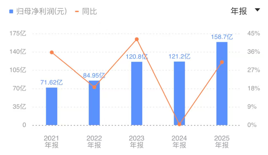 归母净利润158.7亿,同比更是暴涨30.89%,增收更增利。