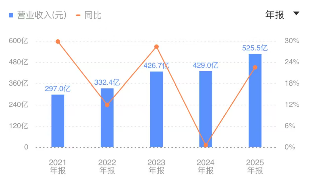2025年,农夫山泉实现营收525.5亿,同比增长22.51%。