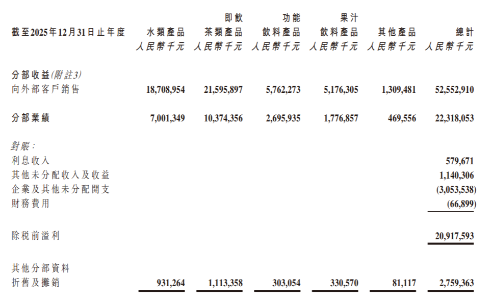 茶饮料,营收 215.96亿 , 同比增长29.0% ,并 超越包装饮用水成为第一大业务板块;