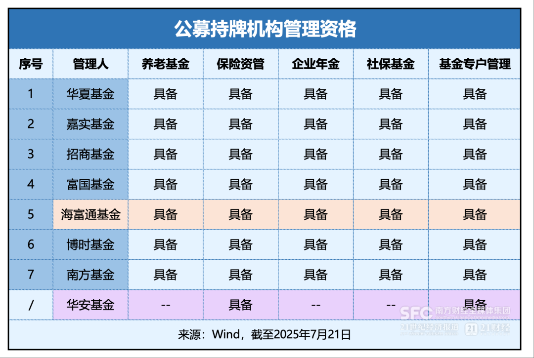此前,业内曾猜测海富通基金可能凭借养老金牌照上演“蛇吞象”,其持有养老基金、企业年金和社保基金管理资格,而这正是华安基金所缺的关键资质。且企业年金和社保基金管理人资格,已长期暂停向公募基金新增发放。如何妥善处理这两张含金量极高的牌照,是合并后新主体面临的重要课题。
