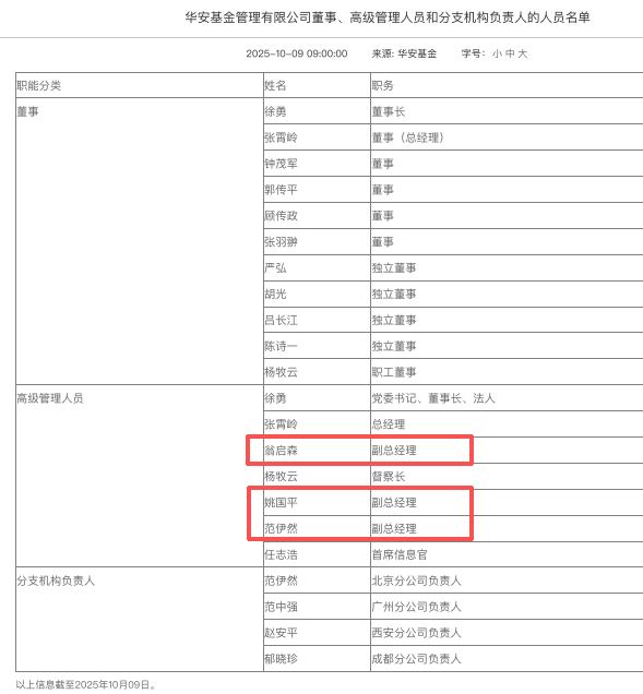 与此同时,华安基金内部正进行关键人事调整。