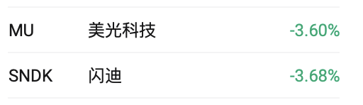 美股存储芯片板块周三遭遇重挫。闪迪一度跌6.5%,美光科技跌4%,西部数据跌超4%,希捷科技跌超5%。