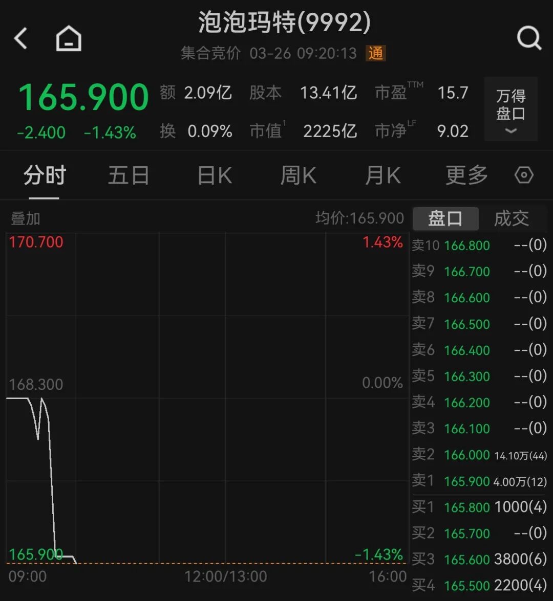 此外,昨日大跌的泡泡玛特延续跌势,开盘跌1.43%。