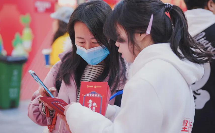除了这些,也有年轻人在“美好留影阁”前拍报留影,带走一份“报纸”作为留念,还有的忙着参与活动“薅”小礼品——冰箱贴、马克杯、帆布包、眼罩.....现场氛围挺热闹的。
