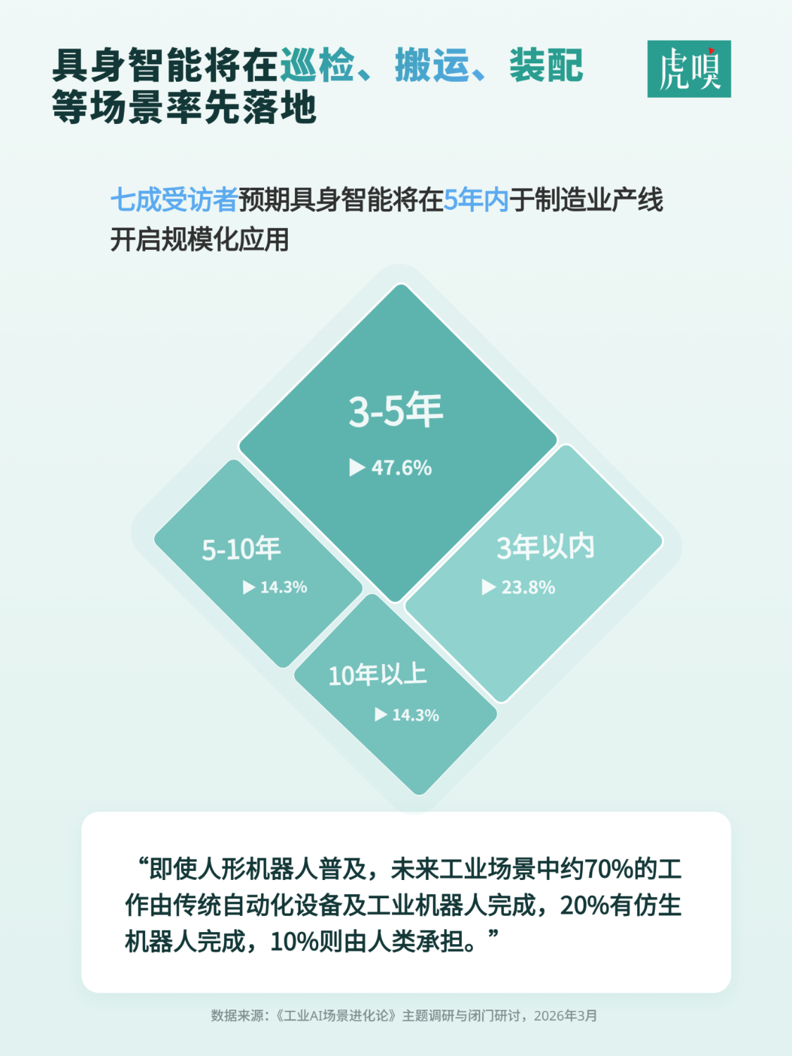 “未来2–3年最可能规模落地的具身智能场景:巡检、物流搬运、简单装配、设备测试。”