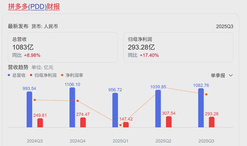 拼多多的上一次高光时刻,是2024年的一季度财报期,当时他们的收入达到 868 亿元,同比增长 130%;净利润 280 亿元,同比增长 246%。