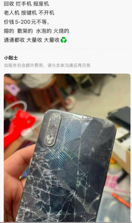 另一位回收商刘先生(化名)也向红星资本局提到,其回收废旧手机不挑机型、不看状态,“开不了机的、没屏幕的手机都可以回收。”