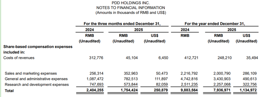 值得注意的有研发费用,2025年同比增长30%,为165亿元。拼多多并没有在市场低迷时收缩开支,反而把大量资金砸向了技术研发和供应链建设。
