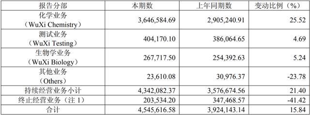 去年药明康德成绩不错,营收454.6亿,同比增长15.8%,而且这个里面的持续经营业务收入同比增长21.4%,这是重点。
