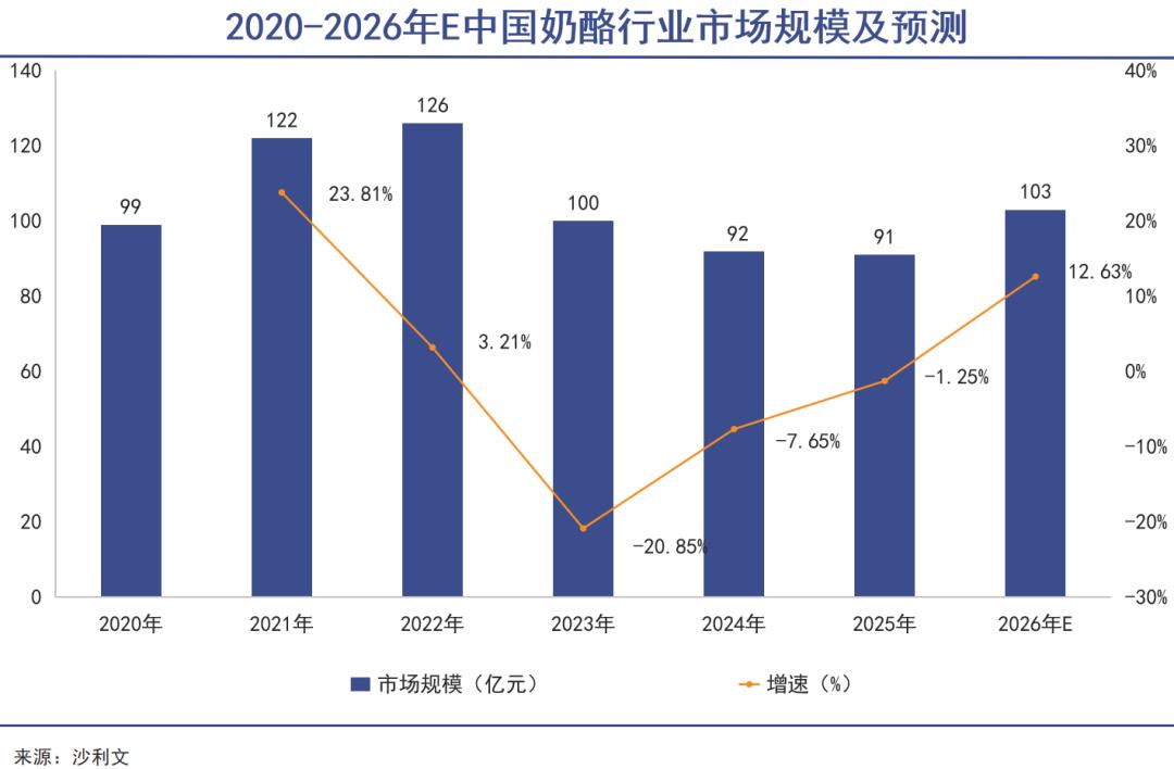 尼尔森IQ数据显示,2022年国内奶酪行业规模达到顶峰后开始滑落,次年直接锐减21%,2024-2025年持续萎缩。