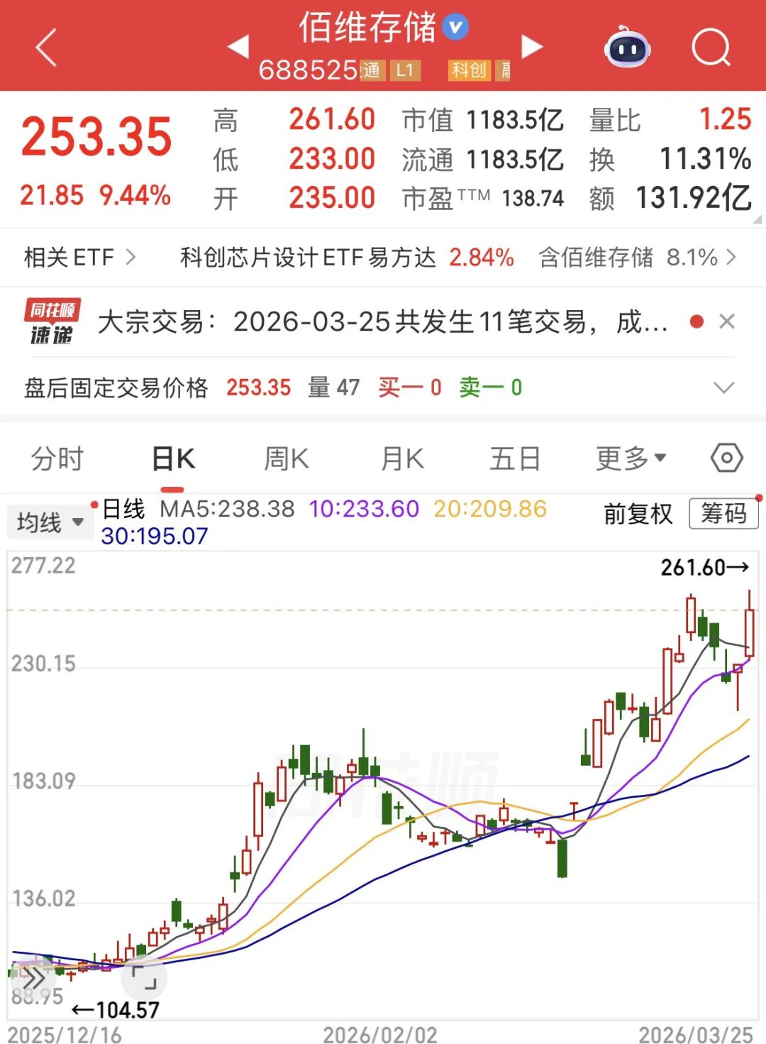 超百亿元采购大单,提前锁定未来两年的晶圆供应......在存储行业价格加速上行的当下,资本市场立即给出了积极反馈。3月25日,佰维存储股价应声上涨,盘中涨幅一度超过12%,最新市值突破1100亿元。