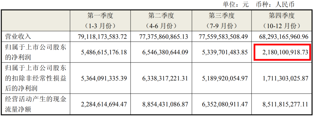 更重要的是去年第四季度,海尔智家归母净利润21.8亿,环比直接腰斩。