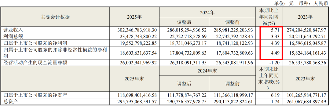 归母净利润196亿,增幅4.39%,创下近十年(2016-2025 年)的新低。