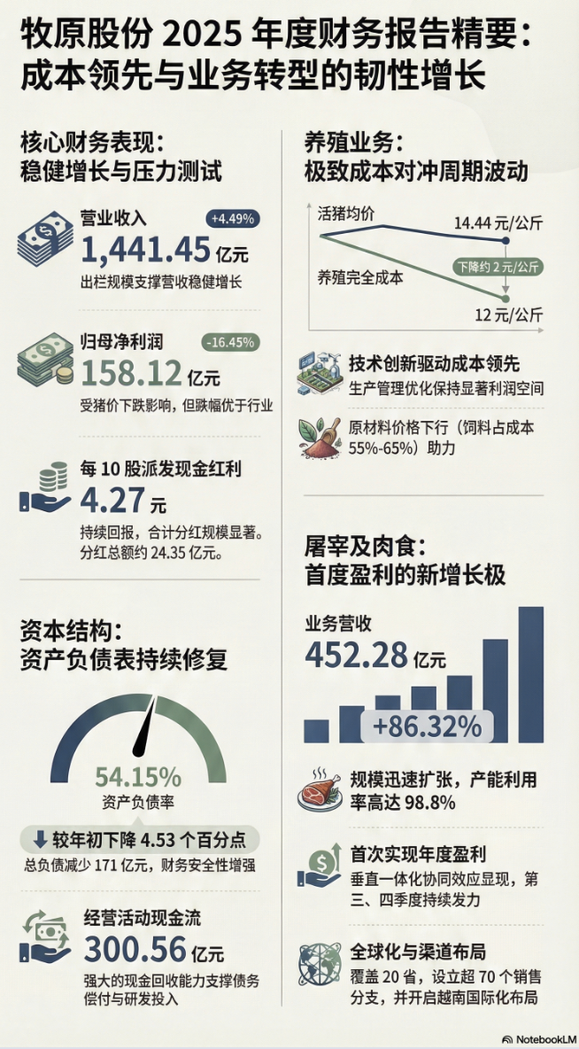 与此同时,屠宰及肉食业务营业收入同比大增86.32%,并于2025年首次实现年度盈利,成为公司业绩结构中的重要新增看点。公司亦宣布每10股派发现金红利4.27元,分红总额约24.35亿元。