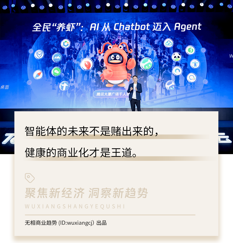 但入口数据并不好:聊天机器人用户粘性有限,即用即走,而且难以产生更多收益。而“龙虾”类智能体却让腾讯看到了一个新可能: