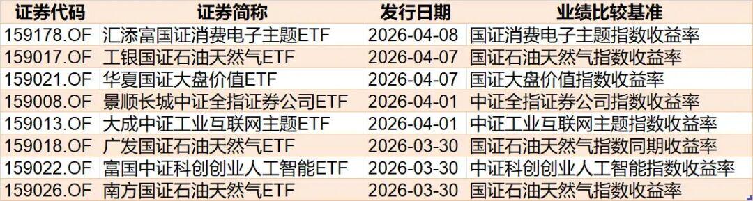 目前有5只ETF披露下周发行,跟踪标的为石油天然气、双创人工智能、工业互联网、证券等。