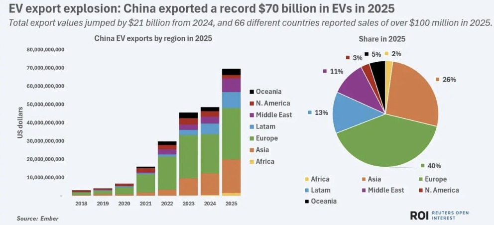 从全球格局来看,中国近期已超越日本,跃升为全球最大汽车出口国,销售版图延伸至欧洲、拉丁美洲及北美部分地区。加拿大和墨西哥已开始以较低关税税率接纳中国电动车,并逐步将其整合进本地市场。