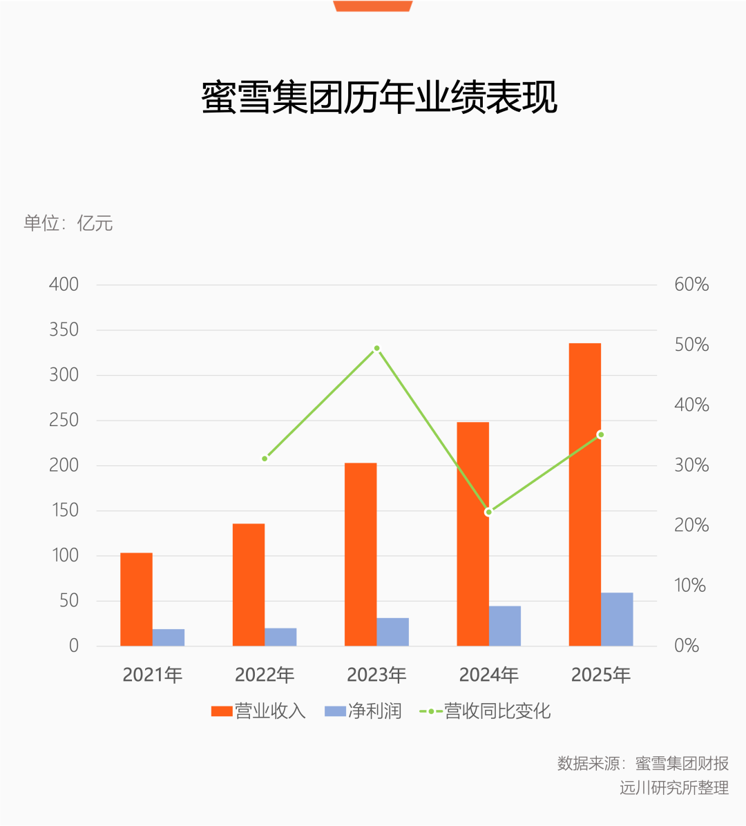按照蜜雪集团的年报,整个2025年,公司收入335.6亿元,同比增长35.2%;净利润近60亿元,同比增幅33.1%[1],依然处于高增长阶段。
