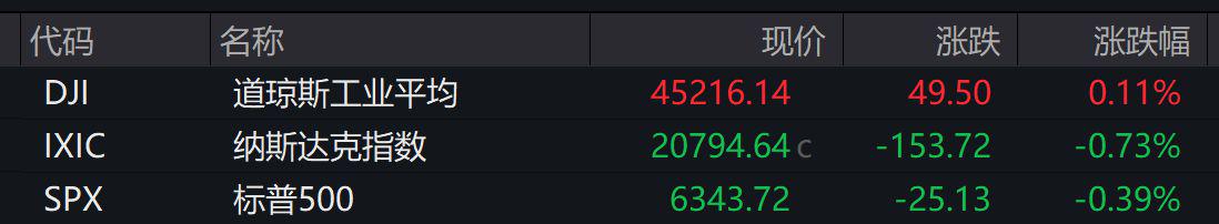 美东时间3月30日16:00(北京时间3月31日4:00),道指收涨49.50点,报45216.14点,涨幅为0.11%;纳指收跌153.72点,报20794.64点,跌幅为0.73%,连续第3个交易日下跌;标普500指数收跌25.13点,报6343.72点,跌幅为0.39%,连续第3个交易日下跌。