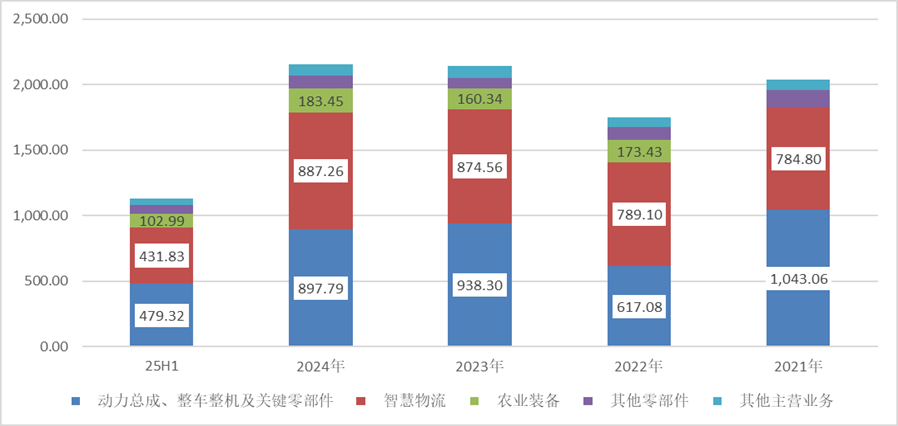 其中,重卡与农业装备呈现较强周期性,智慧物流稳步增长,新能源等业务自2025年上半年起逐步放量。