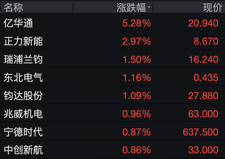 电气设备股多数上涨,亿华通涨超5%,钧达股份、宁德时代、中创新航等均走高。