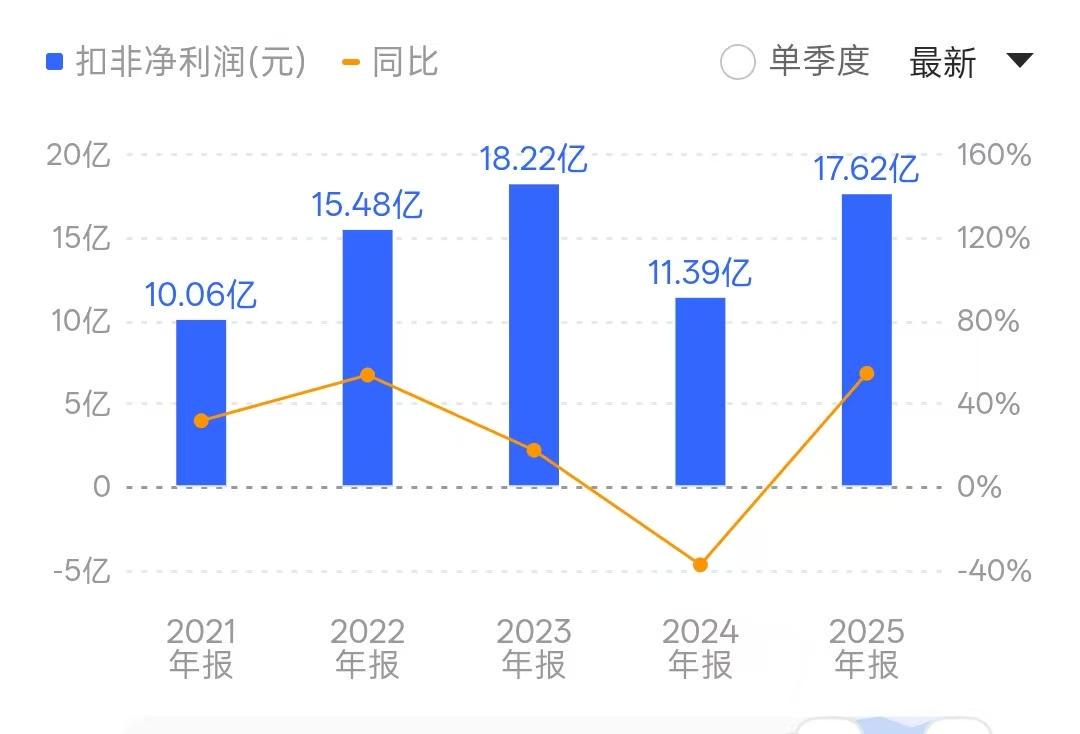 财报显示,2025年,ST人福实现营业收入239.62亿元,同比下降5.79%;实现扣非净利润17.62亿元,同比大增54.75%。