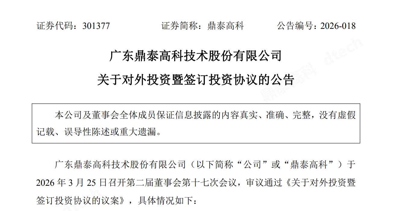 日前,广东鼎泰高科技术股份有限公司(以下简称“鼎泰高科”)发布公告,拟投资50亿元在厚街TOD片区内投资建设鼎泰高科智能制造总部基地项目。
