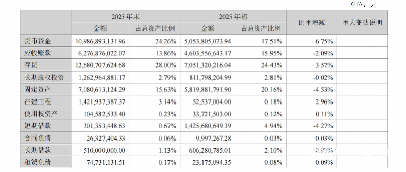 在亮眼业绩的背后,中际旭创财务结构与业务布局中的潜在风险也逐步显现。截至2025年末,公司存货规模达126.81亿元,同比增长79.8%,存货占总资产比重升至28%,存货周转率2.25次,同比下降19.31%,周转效率明显放缓。
