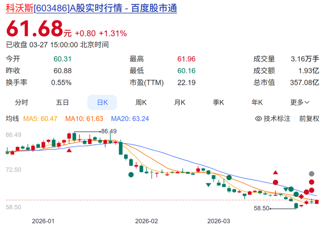 这份看似亮眼的成绩单,在资本市场却并未激起太大波澜。相反,科沃斯股价自2020年高点250.41元一路下跌至2026年3月底的62元左右,跌幅高达75%。这种财报与股价的严重背离,揭示了市场对这家昔日扫地机器人龙头的深层担忧。