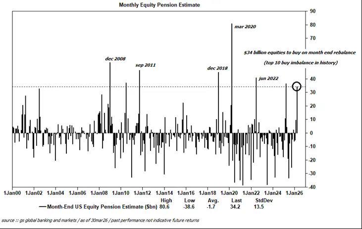 与此同时,季末养老金再平衡带来约340亿美元的买入需求,为本世纪第八大单日养老金买入规模。趋势追踪型系统投资者CTA)方面,据此前数据,过去一个月CTA已在全球股票市场净卖出1840亿美元,并持有约470亿美元的净空头头寸——极度空头的仓位结构意味着任何利好消息都足以触发轧空行情。