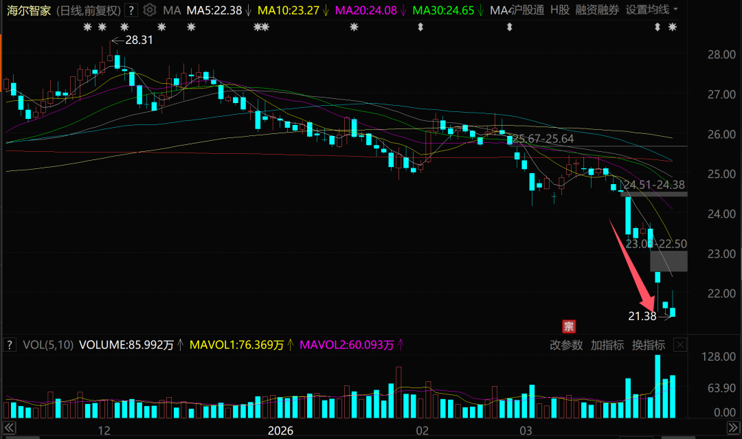 A股这边,家电巨头海尔智家最近发布财报,结果也是连续杀跌。