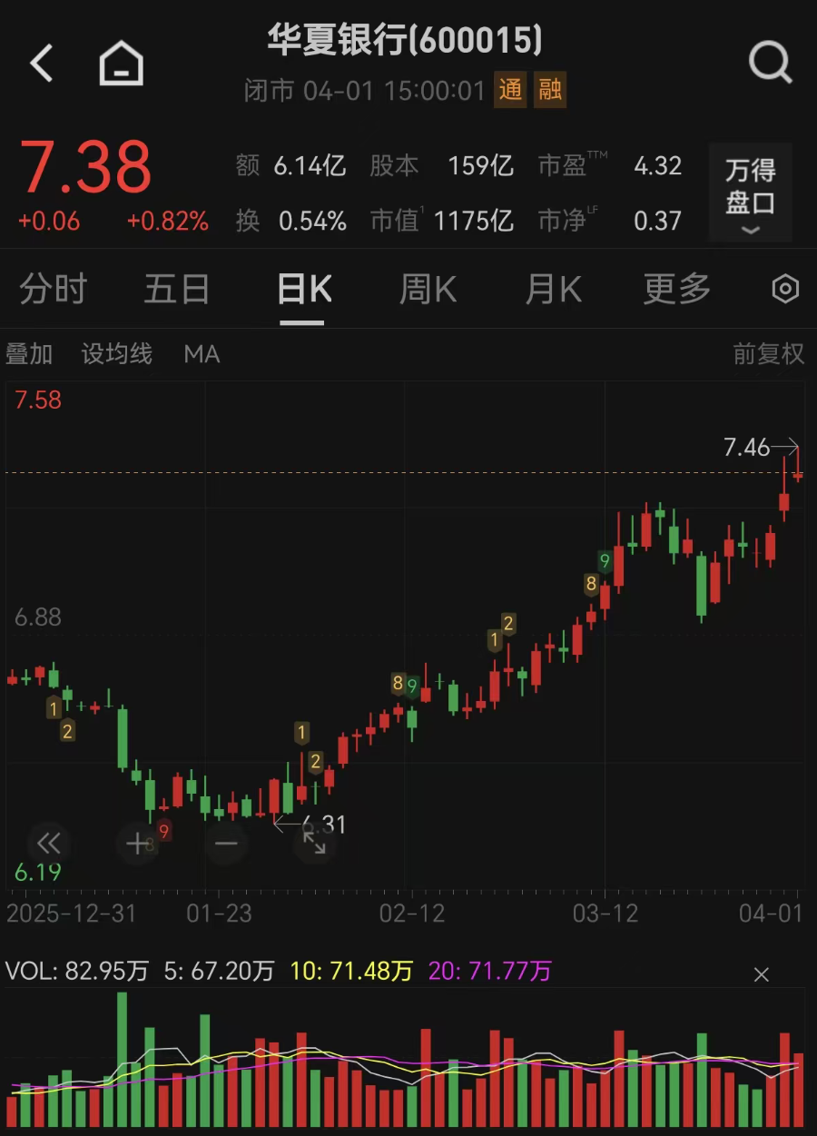 3月31日,华夏银行副行长、财务负责人、董事会秘书杨伟在2025年年度业绩说明会上表示,今年,该行根据国家“十五五”规划方向以及该行未来发展战略,制定并披露了新的估值提升计划。后续将以战略为引领,持续推进经营效能提升,全力服务新质生产力发展,多措并举提升中长期投资价值,切实维护全体股东利益。