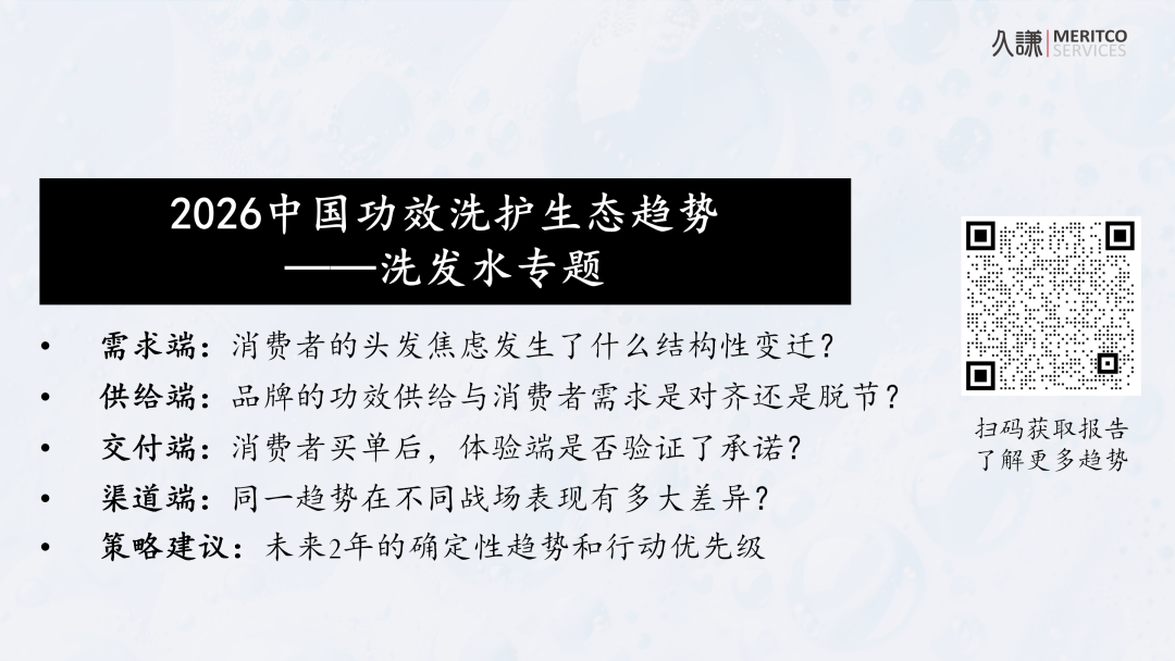 今天,我们将拆解久谦中台发布的《2026中国功效洗护生态趋势——洗发水专题》报告,带你看看什么是洗发水品牌的“三层壁垒”,以及如何用数据避开行业里最贵的错误。