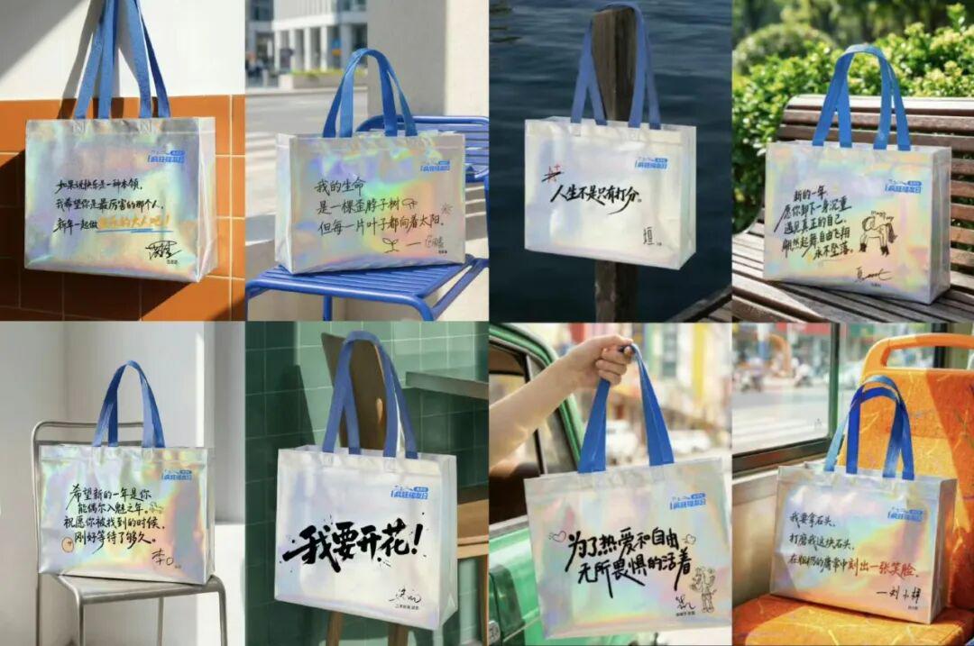 有人在下夜班后跑了两个便利店,最终拿到最后一个“一杯敬朝阳,一杯敬月光”、“早晚碰一下,甜蜜不忧伤”版本。看大家分享自己碰出喜欢袋子的快乐情绪,有缘碰出最喜欢的歌词袋,感觉像是吃了士力架,横扫一天的疲惫感。日子虽然很平凡,但幸福也可以很简单。