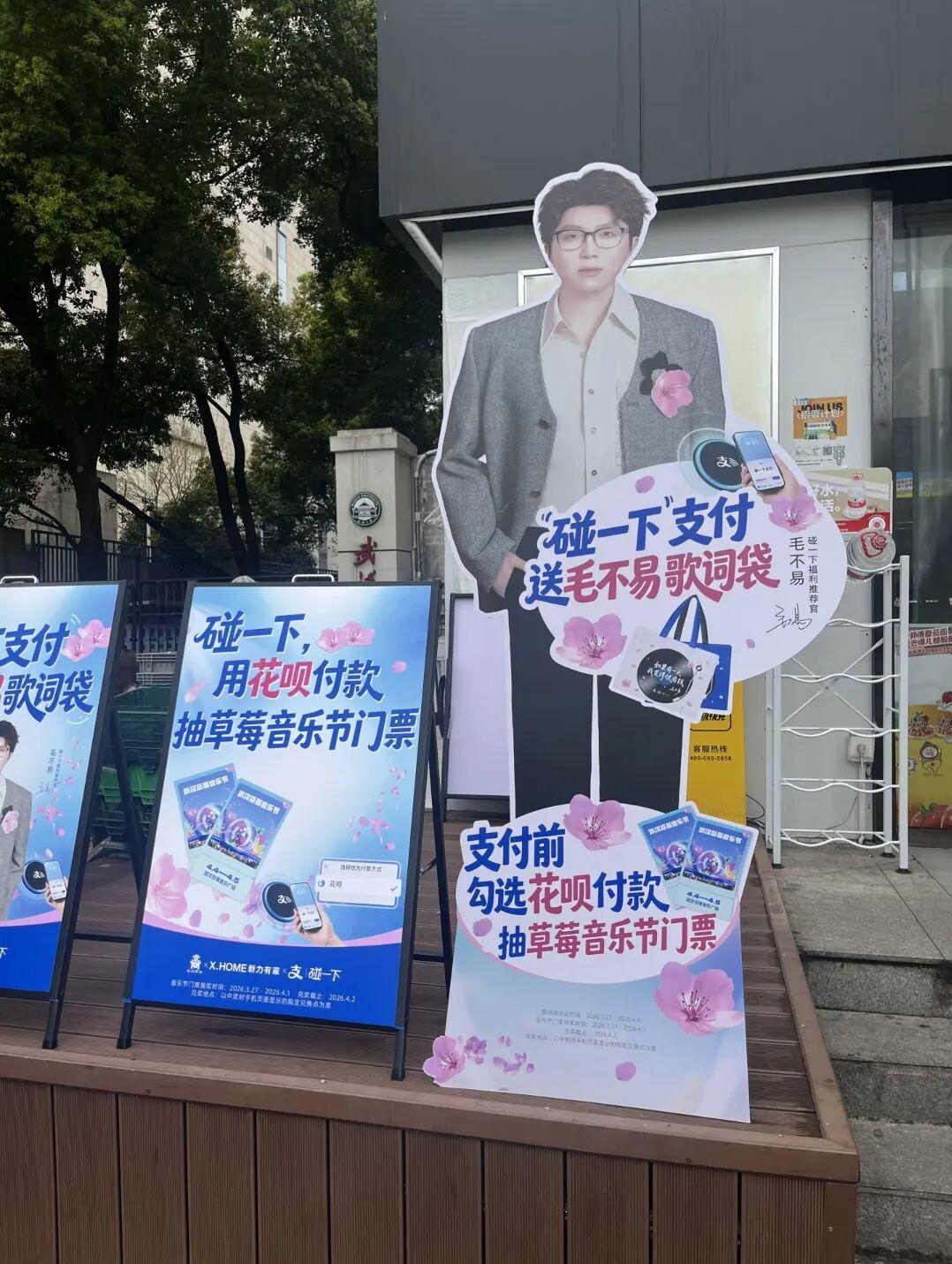 另一方面是「碰一下」玩法跟武汉这座城市双向奔赴。武汉是个属于年轻人的城市,这里盛产大学生,坐拥83所普通高校的数量,放眼全国是名副其实的大学之都,再加上以武汉大学为原点的赏樱季、主打狂欢和释放的音乐节。既是消费旺点,也是年轻人活力浓度高峰,「碰一下」充满情绪价值的支付体验,自然也被这股年轻气盛的氛围加麻加辣。